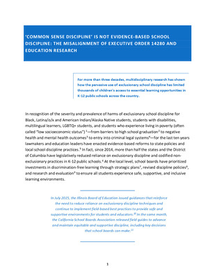 ‘Common Sense Discipline’ is Not Evidence-based School Discipline: The Misalignment of Executive Order 14280 and Education Research