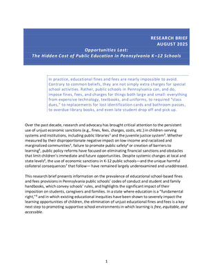 Opportunities Lost: The Hidden Cost of Public Education in Pennsylvania K–12 Schools